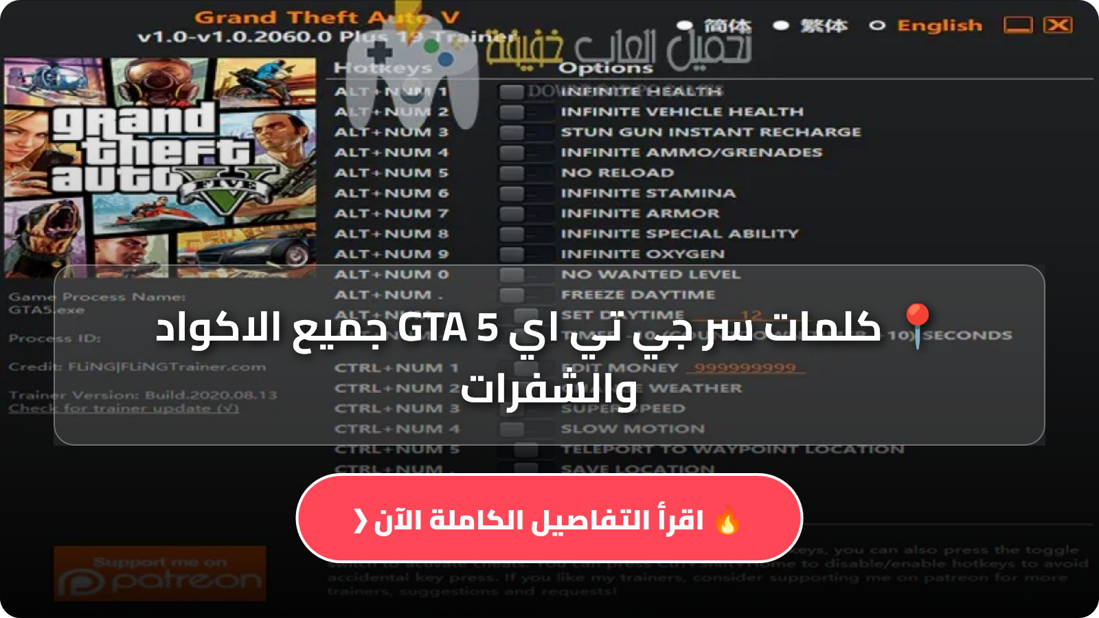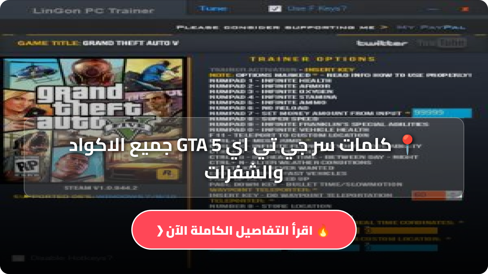 كلمات سر جي تي اي GTA 5 جميع الاكواد والشفرات اخر تحديث 2026 مجانا