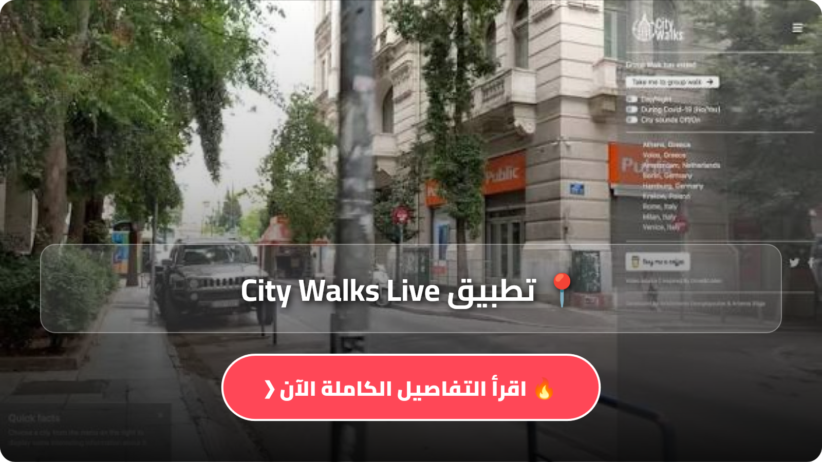 يعد موقع city walks live طريقة جديدة ومبتكرة لزيارة أماكن مختلفة حول العالم دون الحاجة إلى مغادرة منزلك. يمكنك اختيار زيارة مواقع مختلفة مثل مدينة نيويورك ولندن وباريس وطوكيو وغيرها.