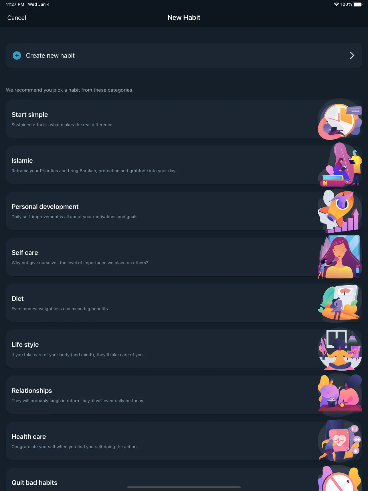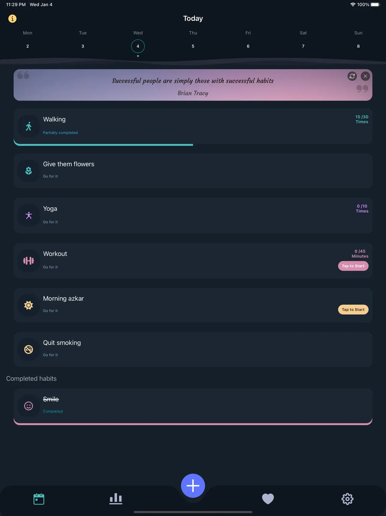 - من أبرز الميزات المتاحة في التطبيق هو إمكانية إنشاء عادات جديدة وتعيين أهداف لكل عادة ترغب في تحقيقها. يمكنك تحديد فترة زمنية معينة للعادة وضبط تنبيه لتذكيرك بها. بالإضافة إلى ذلك، يمكنك تعيين علامات تمييز لتتبع تقدمك والحفاظ على الانضباط.
