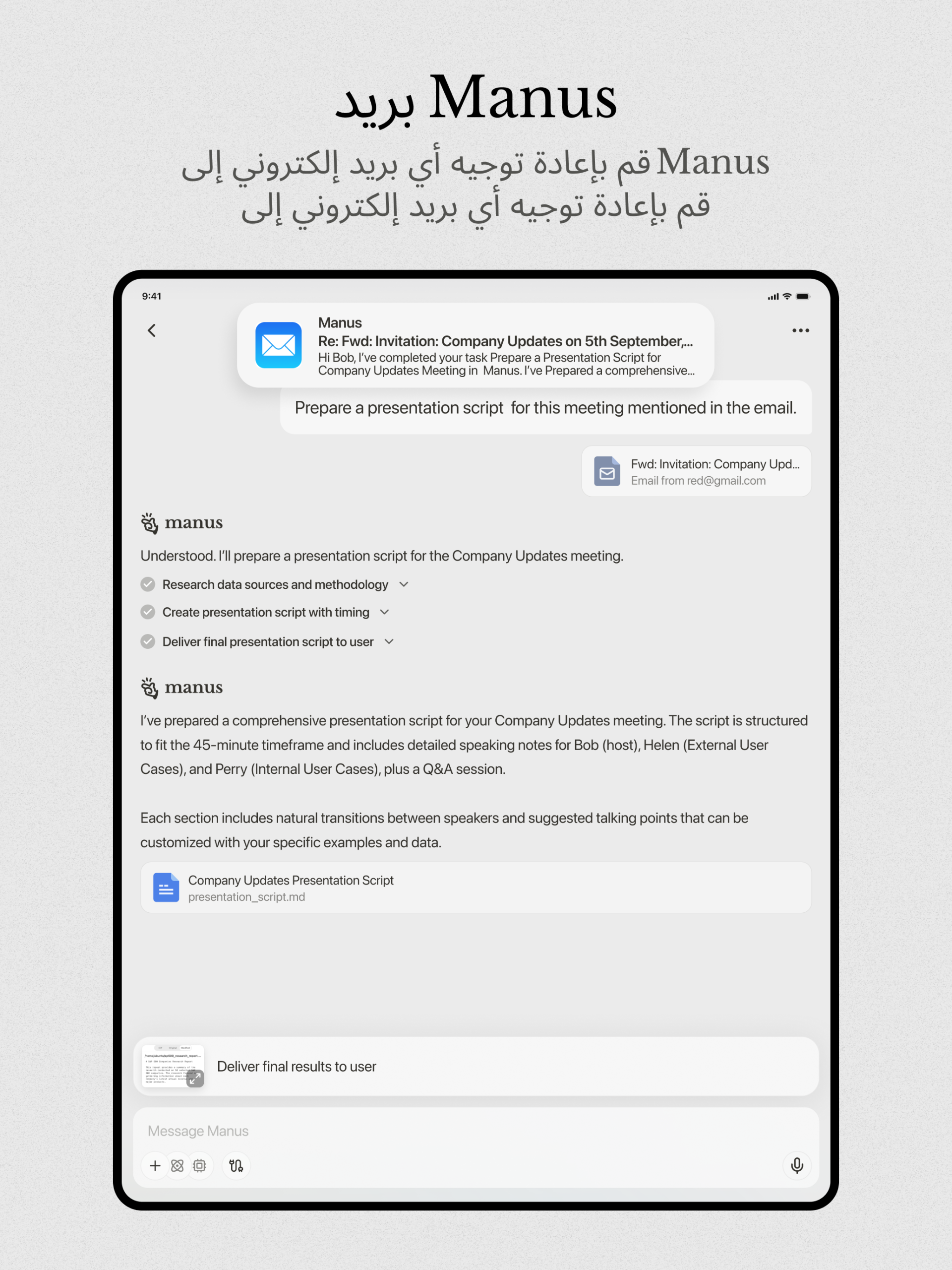 - تعلم مستمر: تعتبر خاصية التعلم الآلي في Manus AI مجاني هي المحرك السري خلف النجاح الباهر الذي حققه التطبيق في الفترة الأخيرة، حيث يقوم النظام بتحليل أسلوبك في العمل ويفهم تفضيلاتك الخاصة ليقدم لك مقترحات دقيقة تتماشى مع رؤيتك، هذه الميزة تجعل التطبيق يتطور معك يوماً بعد يوم ويصبح أكثر ذكاءً في توقع ما تحتاجه، مما يوفر عليك عناء إعادة ضبط الإعدادات في كل مرة.