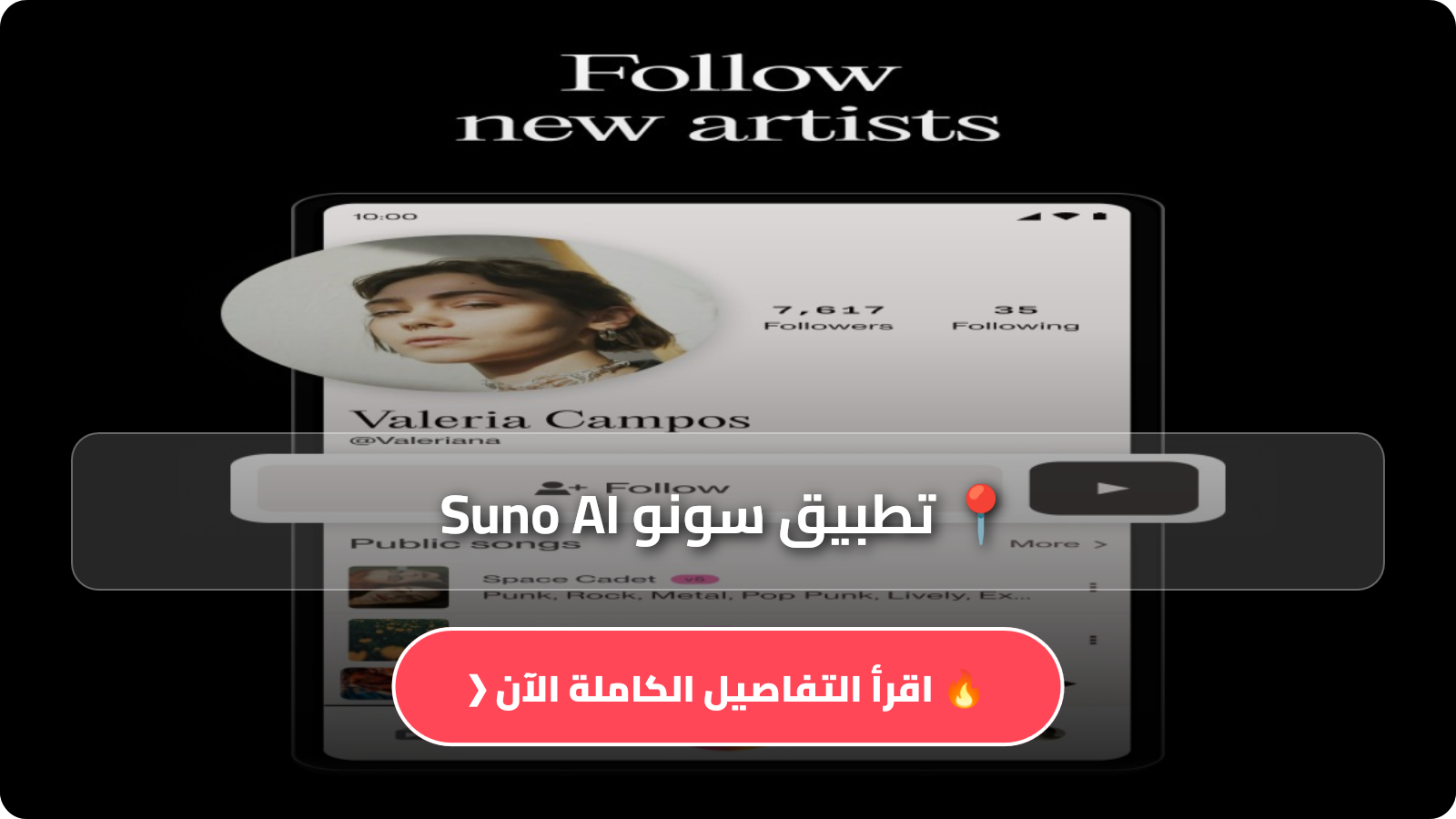 تنصل: روابط تحميل تطبيق سونو Suno AI مهكر APK لتحويل النص إلى أغنية للاندرويد اخر اصدار 2026 مجانا. المرفقة في هذا المقال لا تعود حقوق ملكيتها إلى موقعنا، وإنما إلى موقع أخر. فقط نحن نقوم بتوفير روابط تحميل وشروحات التطبيق، حيث إننا ملتزمون بقانون الألفية الذي يحمي حقوق الطبع والمؤلف.