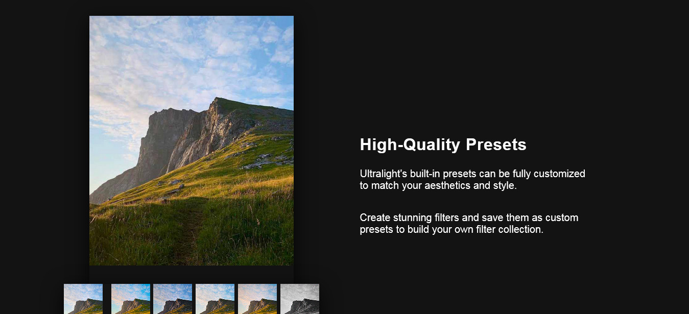يضم تطبيق ultralight مهكر مجموعة حصرية من المميزات الفريدة من نوعها والتي تجتمع في تطبيق واحد فقط، مما يجعل محبي تحرير الصور حول العالم يفضلون هذا التطبيق عن غيره من التطبيقات في هذا المجال، وتتمثل أهم هذه المميزات في التالي: